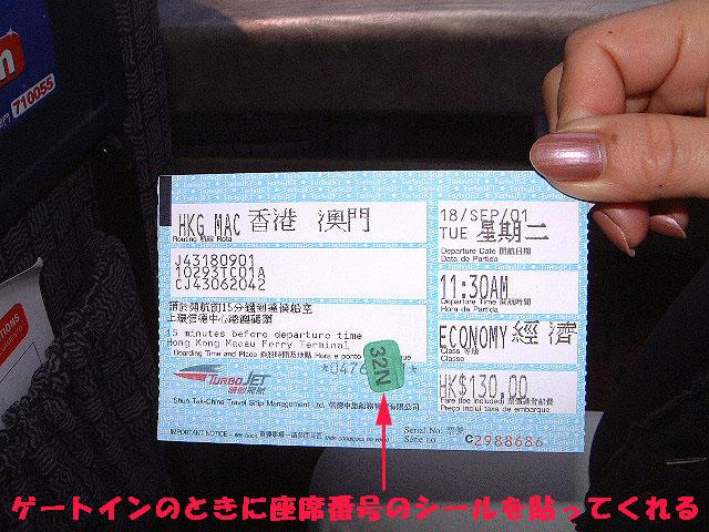 フェリーターミナルに着いたら、チケットの購入です。運行案内板で乗る便を決めましょう。便が決まったら、日付・時刻・大人/子供・枚数を告げてチケットを買います。私達は必要なことをメモした紙を窓口で示して買いました。漢字圏なので日本人にとっては便利ですね。ヘタクソな英語をしゃべらなくてもよいのでホント助かります(^^;;。運賃はマカオまでエコノミーで130香港ドルです。