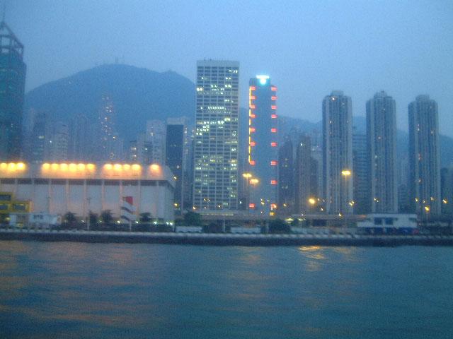 香港に近づく頃には日暮れがせまっていました。船の中から見る夕陽は、なんとも寂しげでなんとも美しく、「あぁ旅をしてるんだなぁ」と実感できるひとときですね。港に入る頃には、香港名物の100万ドルの夜景も5万ドルぶんくらいは見ることができ、大満足のマカオ小旅行でした。 |