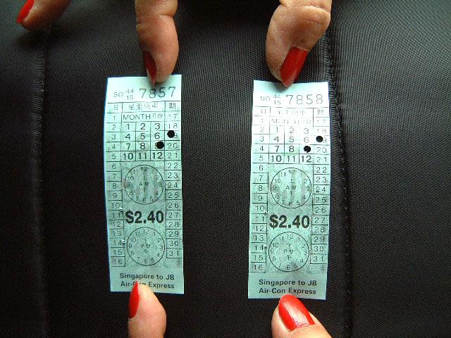ジョホール・バル駅を左に見ながら、イミグレーションに向かいます。出国手続きは簡単に済み、バス乗り場へ行きました。 見ると各駅停車の SBS 170番がいます。マレーシアに入るときにバックパッカーが乗っていたので、私たちも JB Express のチケットで乗っちゃおうということにしました。 先に私がチケットを示して乗ろうとすると、係員が笑います。きっと「高いチケットで安いバスに乗るなんてアホやな」と思ってたんでしょうね (違うかな (^^;;;。 次に奥様が同じように乗り込もうとすると、なぜか手で制されてしまいました。仕方ないのですでに乗り込んでいた私はバスを降り、奥様といっしょに JB Express の乗り場に向かいます。 歩きながら「なんで奥様は乗れなかったんだろう」と不思議に思いましたが、分かってみれば簡単なことでした。シンガポールで購入した使用済みのチケットを見せてたんですね(笑。 しばらく待つとバスが到着し、乗り込むとすぐに発車しました。マレーシアとお別れです。 ジョホール水道を渡ると、すぐにシンガポールへの入国審査です。 入国カードを書いていると、隣りで書いていた白人のおっさんがえらい口出しするんですよ。ちょっと書くのをやめると隣りから覗き込んで、「オーノー」とか言ったりして。「オーノー」はよく聞くと「All No」でした。要するにその部分の項目は「すべていいえ」にしておけって意味らしいです(笑)。しかし聞き取りにくい英語だったなぁ。 私たちが書き終えてカウンターに向かうとき、そのおっさんはまだ書いてました(爆笑)。人の世話やく前に自分の世話やけっつーの。ったくもう。 以上でマレーシアへの小旅行が完全に終わりました。再びシンガポールの地に戻ります。 |