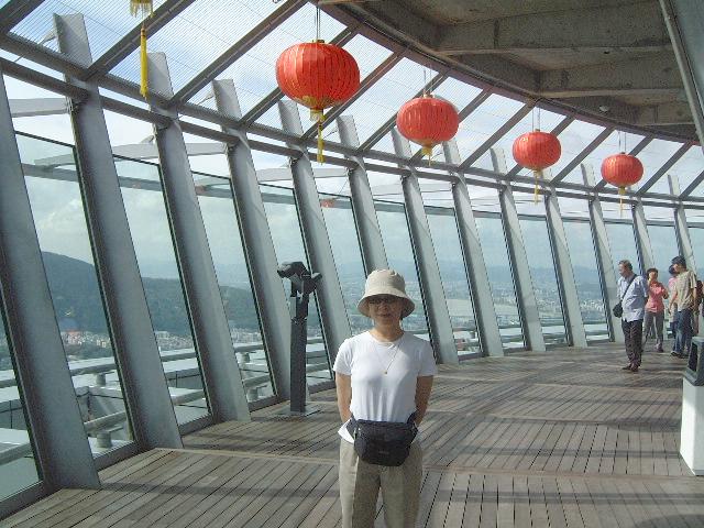 しばらく走るとマカオタワーが見えてきます。 そしてどんどん近づいて、真下を通ることが分かりました。 そこで急遽予定を変更して、マカオタワーで降ろしてもらいました。 マカオタワーも行く予定だったので、ちょうどいいや♪ セナド広場からマカオタワーまでの料金は、Pt22.00 (\330)です。 マカオタワーは 2001年末にできた、高さ 338m のタワーです。 できてからそれほど経っていないので、外観も内部もとてもきれいでした。 展望スペースに上るのは有料で、Pt70.00 (\1,050)です。 ここは私が来たかったんです。 高いとこ大好きなもんで (笑 さっそくチケットを購入し、高速エレベータで展望スペースに上がりました。 58〜61階が展望スペースなのですが、まず 58 階で降ります。 ここがメインの展望スペースで、地上 223m あります。 エレベータを降りると・・・・おぉ、すごい。 快晴の空の下、マカオが一望できるっ。 なかなかの眺望です。 窓に近づいてみると、ありましたよ、スカイウォークが。 スカイウォークは床の一部がガラス張りになっているもので、ガラスの上に立つとまるで空中にいるような感覚になれます。 恐る恐るガラスの上に立ってみました。 「うわっ、腰から下がゾクゾクするっ」。 そうなんです、頭では落ちるはずがないことを理解しているのですが、感覚が許さない。 あのゾクゾク感は体験してみる価値がありますね。 皆さんもマカオタワーにおいでの際にはぜひガラスの上に立ってみてください (ふっふっふ 周りの人を見ていると面白かった。 半分くらいの人はガラスの上に立てないんですよ。 ガラスの部分を避けて歩いてる (笑。 管理人の管理人も、とうとうガラスの上に立つことはできませんでした。 私はゾクゾクしながらも、すごく楽しんじゃいました (○○は高いとこが好き・・・かな しばらく眺望を楽しんでから、61 階の屋外展望スペースに行ってみました。 こちらはガラスの上の方が開いていて、外の風が入ってきます。 ということは、つまり暑いっ。 ここにはちょっとだけいて、タワーを降りました。 なお 59 階と 60 階には、180°ラウンジとか、360°レストランがあります。 360°レストランに行ってみたかったのですが、そこに行くにはいったん地上に降りて上がりなおさなければなりません。 別料金になっているのかもしれませんね。 ということで、今回はパスしました。 【高いとこが好きな人へ】 マカオタワーには、スカイアドベンチャーというアトラクションがあります。 バンジートランポリンやタワーの登頂などです。 その中で、展望スペースの外にある幅 1m ほどの手すりのない通路を歩く (Pt120 : \1,800) アトラクションがあって、私は体験してみたかった。 もちろん命綱をつけてです。 でも管理人の管理人が 「絶対やだ」 と言うので、今回はあきらめました。 やってみたかったなぁ。 |