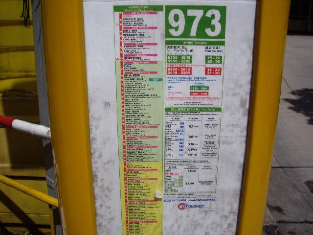 ということで、この案内の前で待っていると、6番の巴士がやってきました。 ところが巴士は 20m ほど手前に停まり、乗降を終えると走っていってしまいました。 あれ? なんで? この案内は巴士站じゃないの? よく分からないままさっき巴士が停まったところまで移動して待ち、無事乗ることができました。 巴士に乗ったのは 16:55、香港仔隧道の入口でちょっと渋滞し、中環に着いたのは 17:30 です。 料金は $5.30 でした。 |