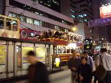| おぉ、貸切トラムだ | 上環でMTRを降りて外に出てみると、珍しいトラムがやってきました。 貸切のトラムです。 貸切トラムは最低2時間から延長は1時間単位でチャーターでき、パーティーなどに利用できます。 食べ物と飲み物を持ち込めば、香港の夜景を眺めながら素敵なパーティーができそうですね。 実はこのトラム以前からチェックしていて、いつの日かチャーターしてパーティーしたいと思ってるんです。 あるていど人数集めればそう高いもんでもないし。 何年後になるか分かりませんが、実現させるゾ~~~っ \(O_O) お~~~っ |