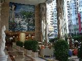 | ホテルを出る | おめざを食べたあと、作戦会議に入りました。 ああでもないこうでもないとしばらく会議は続き、決まったのは九龍城の街歩きです。 どちらかというと管理人の管理人の希望が強く働きました。 目的地が決まったら、まずは両替しなくちゃ。 こういうとき私たちが行くのは尖沙咀の重慶大厦です。 交通の便がいい尖沙咀にあり、両替率がいいと評判です。 10:38 ごろ部屋を出てロビーに下りました。 昼間のロビーは初めて見るわけですが・・・ほぉ、天井が高いし広々としてますね~。 かなり人も多いです。 ロビーからブティックに行く途中には、パン屋さんもありました。 パンだけでなくケーキも置いてあります。 んまそ~。 このパン屋さん、滞在中に一度買ってみようと話してたのですが、結局何も買いませんでした。 ちょっと心残りです。 |