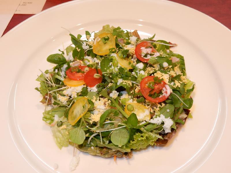 エゾ鮑、ズワイガニ、海老、どれも大好きな食材。 それにサニーレタス、クレソン、カイワレ、トマト、キュウリ、大根、ニンジン、鮑の肝、アンチョビ、オリーブなどを加え、最後に名前の由来であるミモザをトッピングしたサラダです。 あっさりしたドレッシングでまとめてあるので、それぞれの素材の味を楽しみつつ、さっぱりと美味しくいただけます。 しかし鮑の肝って美味いなあ。 |