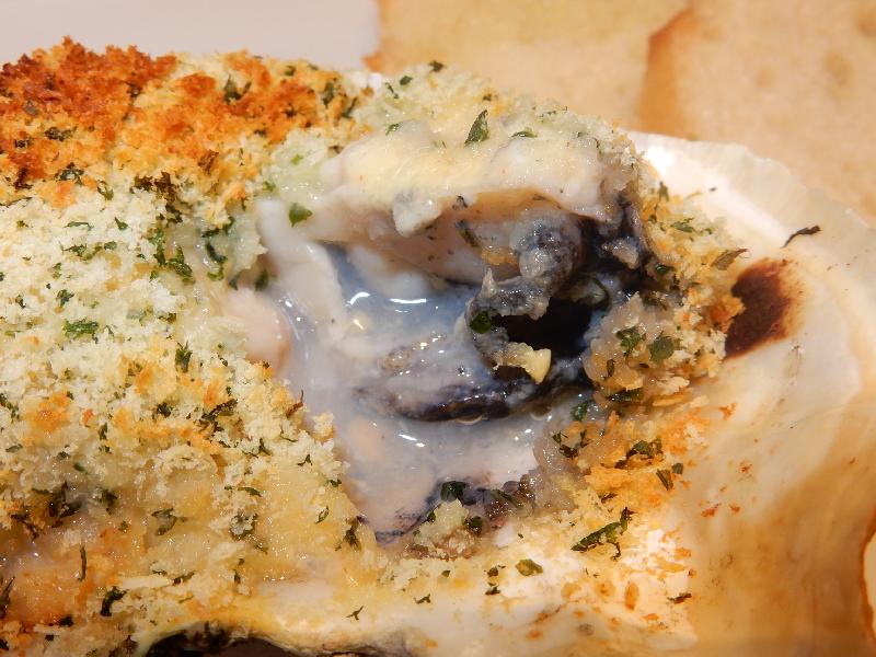 白ワインと水で軽く煮た牡蠣をパンに乗せ、マスタードを塗ってパン粉を乗せてオーブンで焼き上げた料理です。 サクッとした食感とともにマスタードの香りが鼻に抜け、とってもまいう〜。 牡蠣の料理っていろいろなバリエーションがありますが、この料理はかなり上位に入ると思います。 もちろん個人的な感想ですが。 |