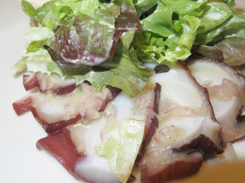 和風の煮物とは一味違った洋風煮物です。 赤ワインベースのソースで煮込んだイイダコはとても柔らかく、独特の風味に仕上がっています。 実は赤ワインソースはイマイチ得意ではないのですが、これはなぜか美味しくいただけました。 なぜだろう・・ 少し甘めの味付けですが、おつまみにとてもいいかもしれません。 |