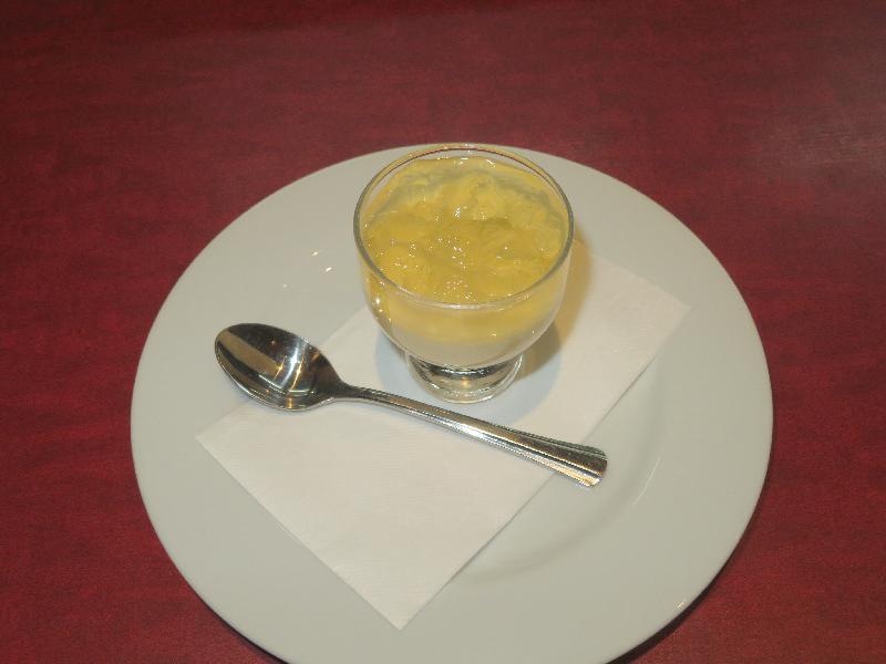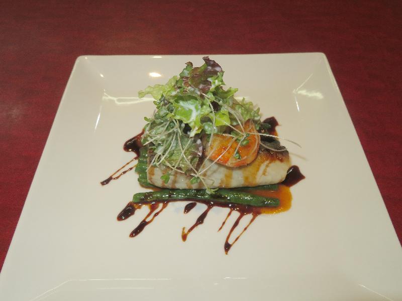 この日のお魚は真鯛でした。 大きめの切り身のあぶり焼きがメインで、付け合わせはイカとエンガワのローストです。 イカはインゲンを巻いていました。 ソースは真鯛の出汁に数種類の野菜のみじん切りを加えたもので、軽い塩気が魚介の味を引き立てていますね。 パンは温められていて、ソースを付けて食べると最高。 |