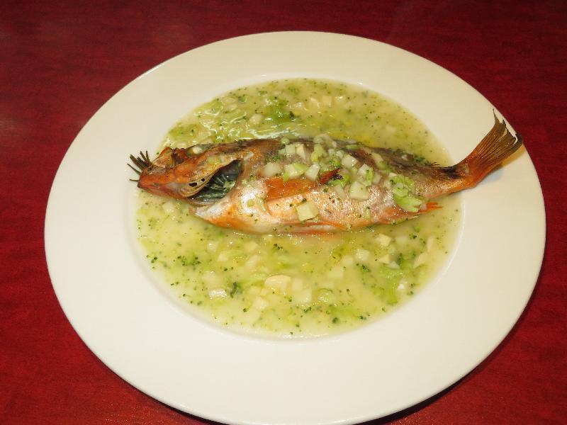 20cm以上のメバルを一尾丸ごとローストし、ほんわりした優しい味のソースをたっぷりあしらった豪快な料理。 かなりなボリュームなのですが、さっぱりした味付けなのでさらっと食べられてしまいます。 残ったソースは当然パンでふき取って食べました。 |