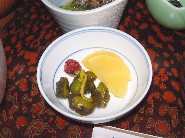 私が起きたのは7時半頃でしたが、すでに管理人の管理人はひとっ風呂浴びてきたと言ってました。温泉は好きですが、そこまでの元気はないです(^^;;。 朝食は部屋出しです。私たちはバイキング形式はあまり好きじゃないんです。七滝温泉ホテルに決めた理由の第一は朝食が部屋出しってところでした。 内容的にはありふれた感じでしたが、最近は焼き魚が付かないんですね。若い人たちには人気がないのかなぁ。 内容は、焼き海苔、マグロのブツ、コンニャクの田楽、シラスおろし、青菜のおひたし、ハムサラダ、岩海苔の佃煮、半熟卵入りそば、味噌汁、香の物でした。 マグロのブツってのが珍しいですが、朝から刺身系はどんなもんでしょ。 |