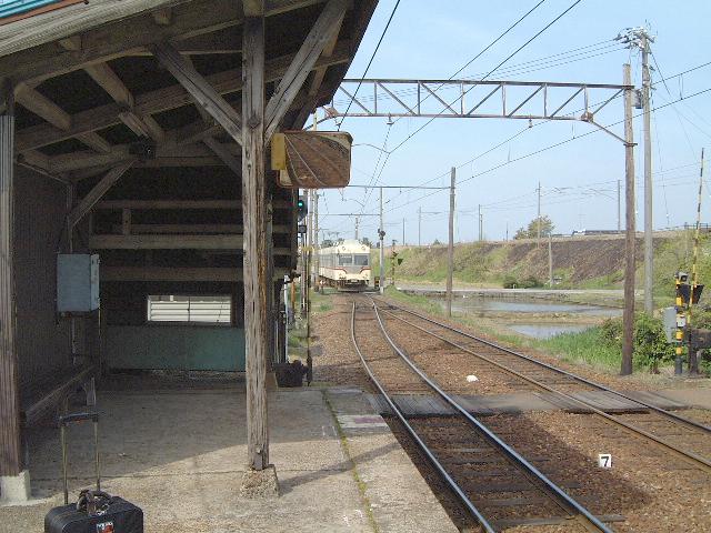 | 西魚津 ⇒ 魚津水族館 | ゆったりとした景色の中をガタゴトと揺られて電車は進み、19個目の駅 "西魚津" に到着しました。 西魚津で降りたのは私たち2人だけで、降りるとすぐに電車は行ってしまいます(あたりまえか。 さてホームに降り立ったのですが、人っ子1人いません。 いやぁこれぞローカル線の駅ですね。 無人駅で、木造の駅舎は長い年月を感じさせるてくれます。 こういう趣のある雰囲気好きだなぁ。 でも不安感もいっぱい。 何しろ周りに誰もいないし、右も左も分からんっ。 ガイドブックによると、西魚津駅から水族館までは 徒歩 10分 とのことです。 この「10」という数字、よぉ〜く覚えておいてくださいね。 そゆことで、私たちはとりあえず駅舎を出ました。 すると [ 魚津水族館はこちら ] の看板が。 ほっとひと安心して、歩き始めます。 駅からしばらくは細い道で、数分で広い道に出ました。 周りには田んぼがあって、オタマジャクシなんぞも泳いでいます。 のどかだなぁ。 オタマジャクシなんて久しぶりに見ました(^^)。 この辺まではよかったんです、この辺まではっ。 5分経過 のどかな景色が続きます おいっ、どうなっとんじゃ?。 20分歩いても水族館は影も形もありません。 「道間違えたかなぁ・・」 と不安なまま歩いていくと、20分以上歩いてやっと 「あれがそうじゃないか?」 と思える建物が。 結局、西魚津から魚津水族館までは 徒歩 25分 でしたっ。 宿から宿への移動中なので、すべての荷物を持ちながらの移動です。 さすがに頭にきましたね。 この件に関しては、横浜に帰ってからすぐ、出版社にメールで抗議しました。 しかしなしのつぶてです。 あの出版社の本は2度と買うもんかっ。 |