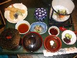 | 京懐石の夕食 | さて夕食は予約しておいた京懐石のお店でいただいたのですが、ひとつお詫びしなければなりません。 私たちが行ったお店○○は、メディアにはいっさい紹介されていません。 うちのHPは個人的なHPなのでなんとか掲載許可をいただこうとお願いしてみたのですが、残念ながら固辞されてしまいました。 そういうわけで、写真も場所の情報も、いっさい掲載できないのです。 ほんとうにごめんなさい。 m(_ _)m 一言だけ感想を。 料理はとても美味しく、お店の雰囲気もよく、しかもとてもリーズナブル。 事前に湯葉を食べたい旨お願いしておいたら、湯葉をたっぷり使ってくださったり、最高のお店でした。 ご紹介できないのが、残念です。 |