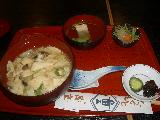 昼ご飯は萬重の出店と決めていました。 お店は京都駅の地下街ポルタにあります。 今回の京都で食べたかったもののひとつは湯葉です。 私は湯葉が大好きで、事前に湯葉の美味しいお店をリサーチした結果、萬重に決定していました。 昼飯どきなのでちょっと混んでいましたが、それほど待つことなく入れました。 私が注文したのは湯葉丼、他に糸車と季節御膳なんぞを頼んで京都最初の食事です。 湯葉丼は初めて食べました。 あんかけになっているのですね。 シメジと湯葉を出汁のきいたあんが包み込み、すごく美味かったなぁ。 付け合せの、ミブナと白身魚の酢の物も酢が強くなくて食べやすかったし。 湯葉丼は思ったより味がしっかりしていて、濃い味が好みの私でもとても美味しく食べられました。 事前リサーチ大成功!! 季節御膳には松茸の土瓶蒸しが付いています。 豪勢ですね。 その他、聖護院蕪の煮物や湯葉刺しなどを見ていると、あ〜京都に来たんだなぁと実感できます。 それからテーブルに用意されているのがゆかりってとこも、いかにも京都ですね〜。 そんなこんなで京都最初の昼飯は、大成功 (YATTA〜 |