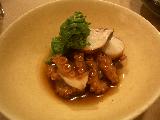 ですね。 ただし醤油ではなく、お出汁で食べます。 そのせいか、シメサバそのものの味がよく分かり、とても美味しくいただけました。 こういう食べ方もいいものですね。 「よもぎ豆腐」 は季節を強く感じる料理です。 食感はゴマ豆腐のようでした。 口に含むとよもぎの香りが立って、いい感じです。 イイダコ煮も季節の料理ですね。 タマゴがいっぱい詰まった胴の部分のプチプチとした食感が最高!!。 ちょっと甘め、しっかりした味付けでした。 関西は薄味という固定観念を持っていましたが、この料理は関東人の舌にも合う濃さでしょう。 若竹煮、これも季節の料理です。 出汁をきかせた薄味の若竹はたいへん柔らかく、箸で切れるくらいです。 とても美味しいです。 管理人の管理人のイチオシは、この若竹煮でした。 さて豚は角煮ですが、これには参りました。 角煮の上にのっているのはサトイモと長ネギです。 角煮が好きでどこに行ってもよく注文するのですが、ここの角煮は最高!!。 久しぶりに本当の角煮を食べた感じです。 甘めの豚肉は柔らかくとろけるようです。 手間をかけないと、このような食感にはなりません。 脱帽。 最後のお魚は、ノドグロの一夜干しです。 これもうまいですね。 さっぱりしているのですが、なぜか味はしっかり。 ノドグロという魚は初めて食べましたが、好きな魚に仲間入りしました。 私たちは美味しい料理をゆっくりゆっくり楽しみ、20:40 ごろお店を後にしました。 帰りにちょびっと副業に行ってみましたが、戦果は・・・・・教えないです・・・ |